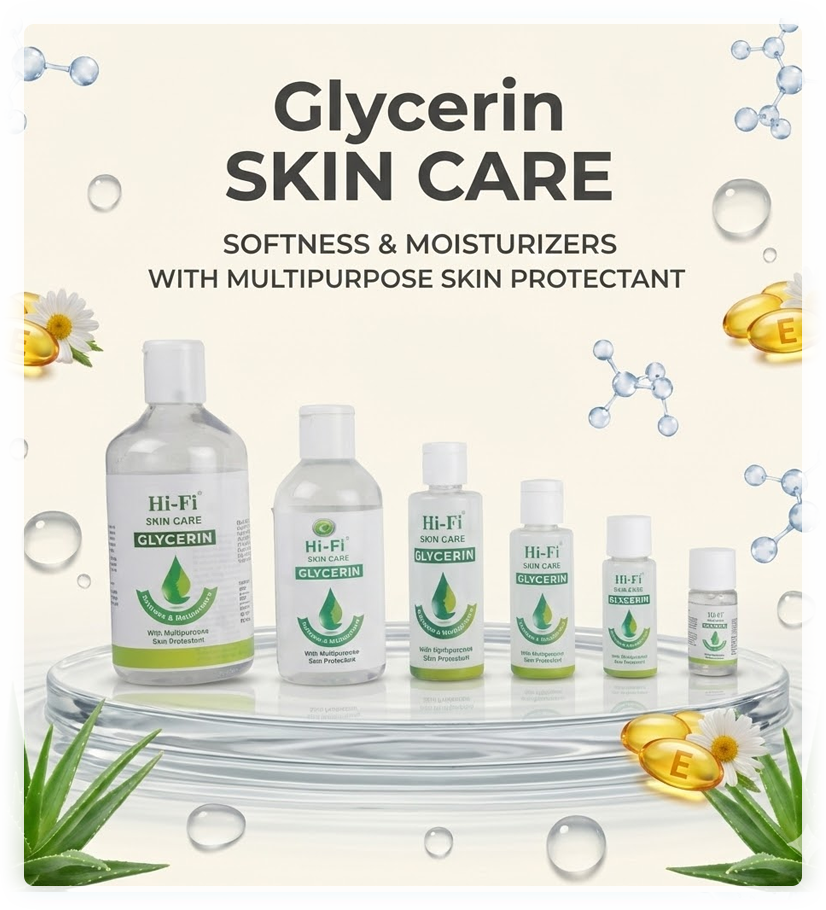 Glycerin is a natural humectant that helps attract and lock in moisture, keeping skin soft, smooth, and well-hydrated. It is suitable for all skin types and works effectively to improve skin texture, prevent dryness, and restore natural glow. Regular use of glycerin helps protect the skin barrier, making it an essential ingredient for daily skincare and beauty routines.