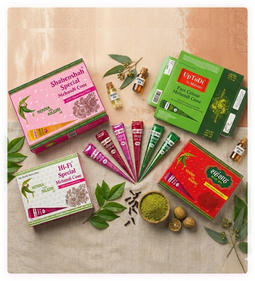 Hi-Fi Mehandi (Heena) Cone is a premium blend of nature’s best ingredients, made to bring out the most beautiful and long-lasting color on your hands. Crafted from pure henna leaves, eucalyptus oil, and clove oil, each cone is freshly prepared to give a smooth, rich, and effortless application.