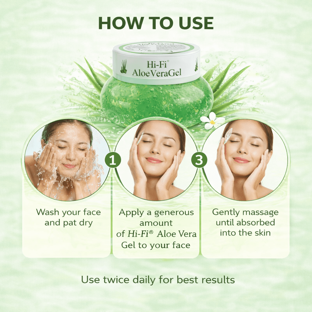 For hair care, Hi-Fi Aloe Vera Gel nourishes the scalp, strengthens hair roots, and helps reduce dandruff and itchiness. It smoothens frizz, adds natural shine, and can be used as a leave-in conditioner or light hair styling gel without weighing hair down. Whether used daily as a moisturizer, after-sun gel, or hair care essential, Hi-Fi Aloe Vera Gel offers simple, effective, and natural care from head to toe.