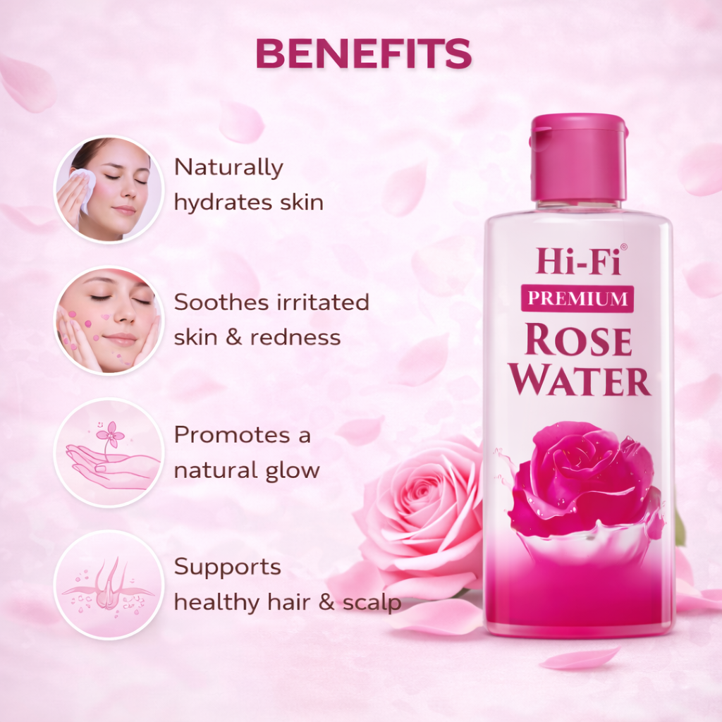 Hi-Fi Premium Rose Water offers several benefits, including: