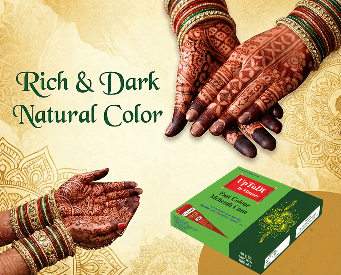 UpToDt Fast Color Mehandi Cone is ideal for weddings, festivals, parties, and special occasions where you want beautiful and dark mehndi quickly. With strong color results and easy application, it helps enhance the beauty of your mehndi designs and gives a fresh, attractive look for longer.