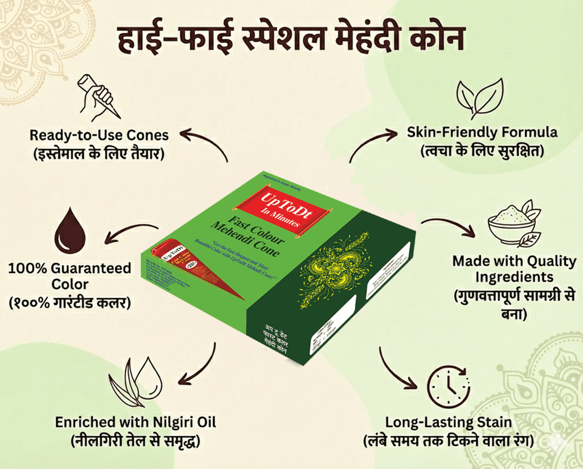 UpToDt Fast Color Mehandi Cone offers several benefits, including: